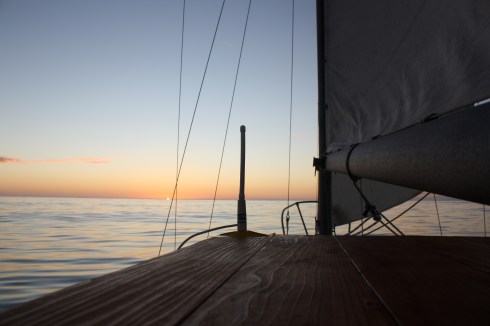 » no wind for her final sail before departure, but great sunsets are always a good sign.