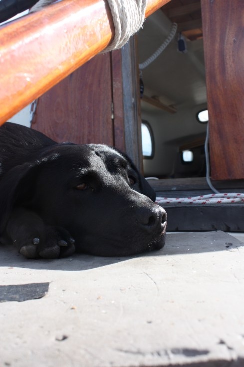 Hope Nora will pee on the boat, my Maggie(black lab) never would. After one night out she jumped the last three feet to the dock then sprinted for the nearest green grass.