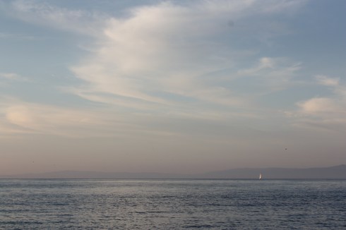 a feathered friend came to watch the sunset with us, this beautiful sunset ended up being not such a great sign, with the following hours being some of the rolliest i’ve spent at anchor yet, guess there’s some storm up in alaska, bummer it had to affect my night sleep, cause i definitely needed one,  instead i spent the night with nora curled up on top of me shaking and whining, up i’d go to the cockpit with her, she’d do circles and whine but, nothing, on and on…. until finally, my dog can pee on a sailboat!!!! not to mention at midnight in a waved tossed cockpit.  can you hold your pee for 36 hours?