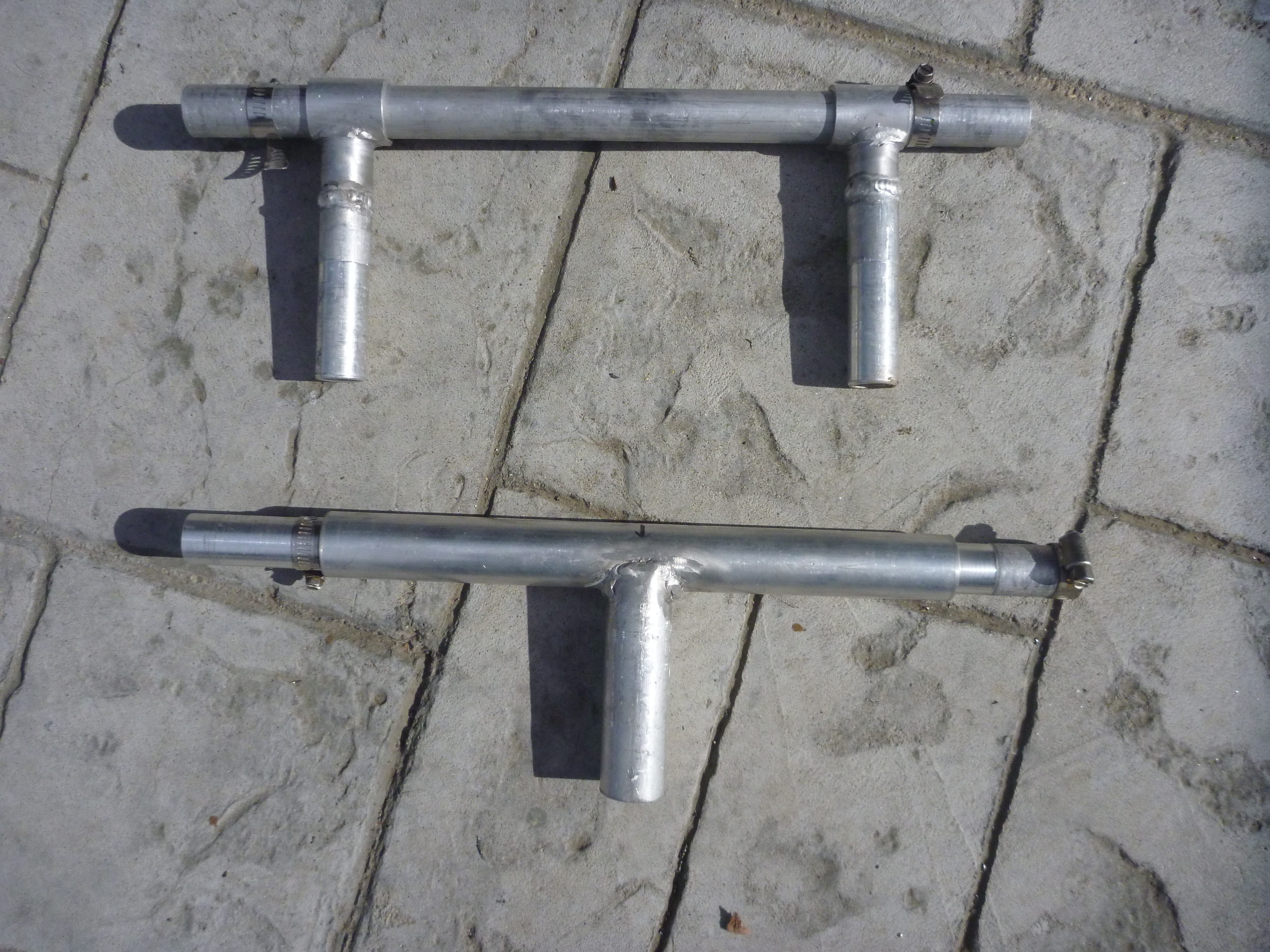 Standard aluminum tubing, welded, creates rigid attachment between hand cycle and wheelchair
