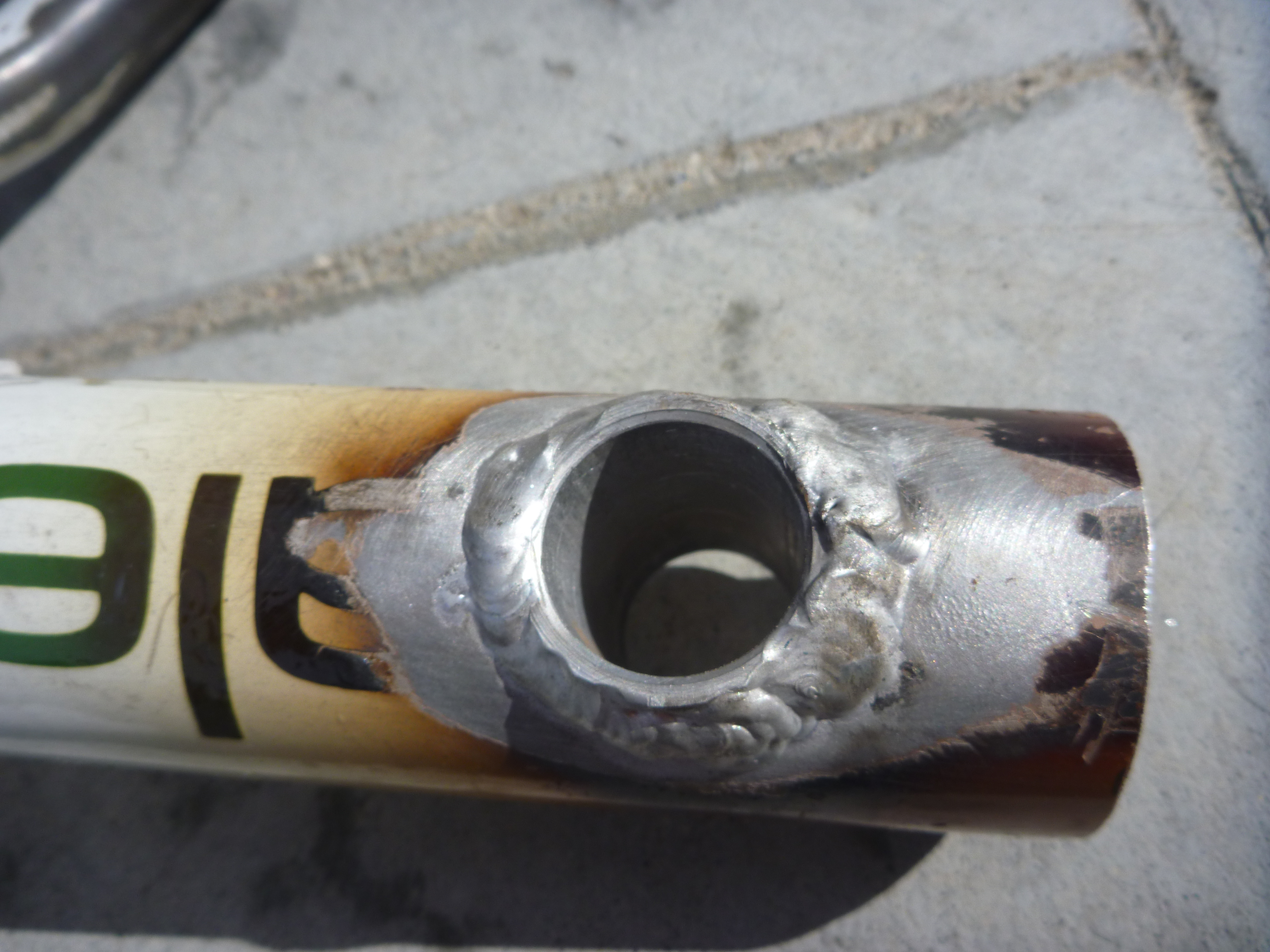 Aluminum housing tube welded inside the bottom tube of a canondale mountain bike frame.